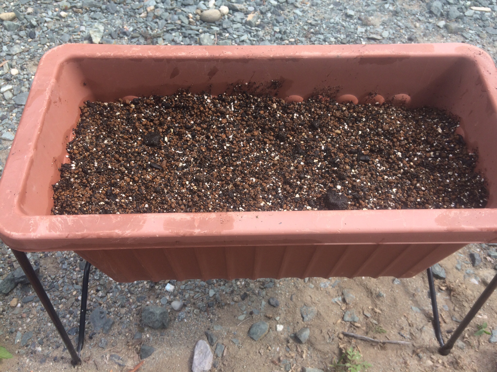 畑がない賃貸住宅の我が家ではプランターで挑戦です。