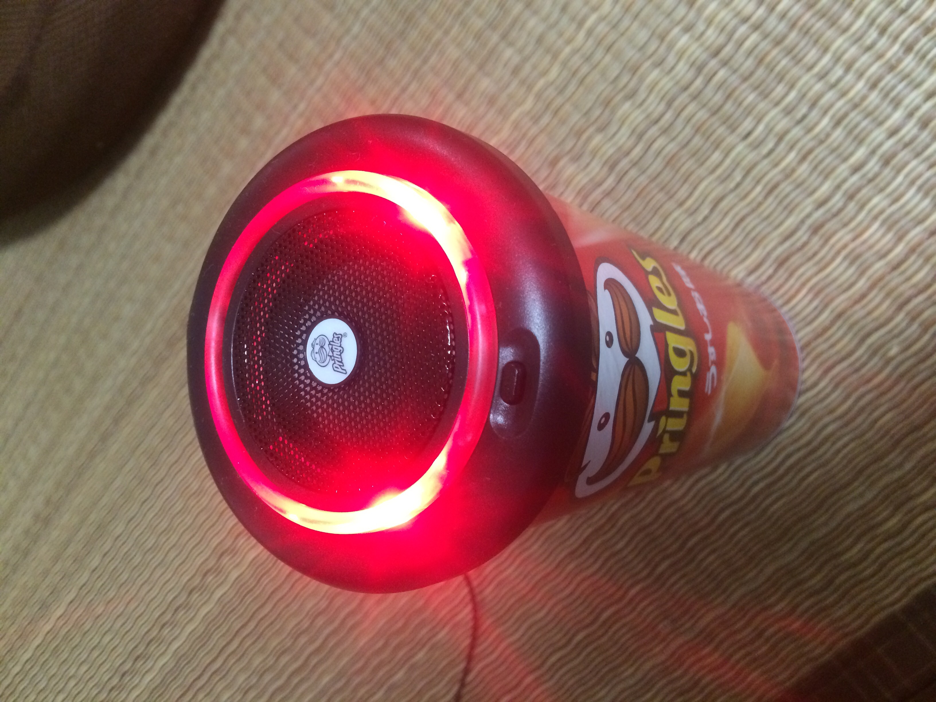 あ、そういえばプリングルズのスピーカーに電池を入れてなかった!!!