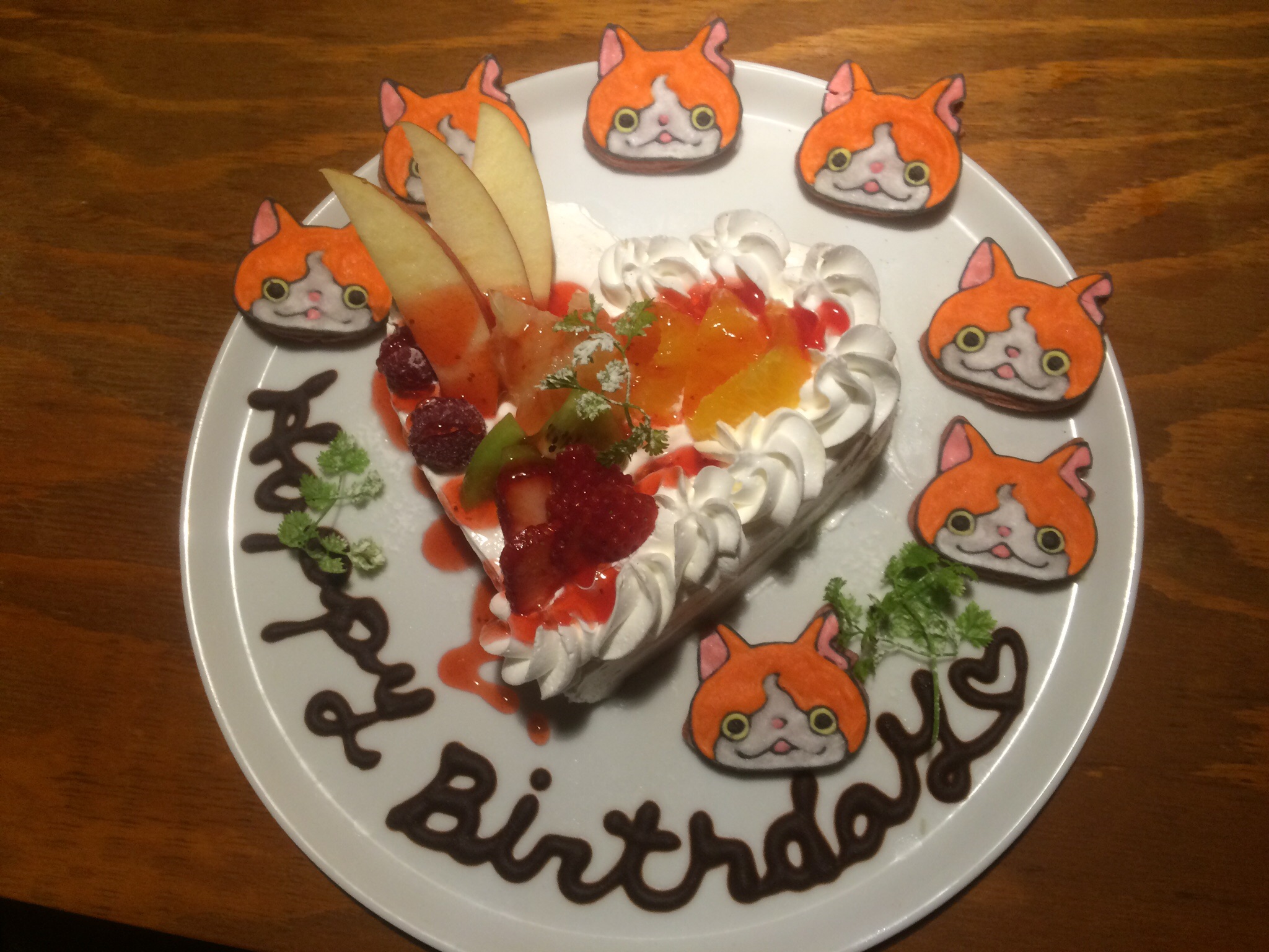 そのケーキに私があげた、ジバニャンクッキーを並べるおねーさま。