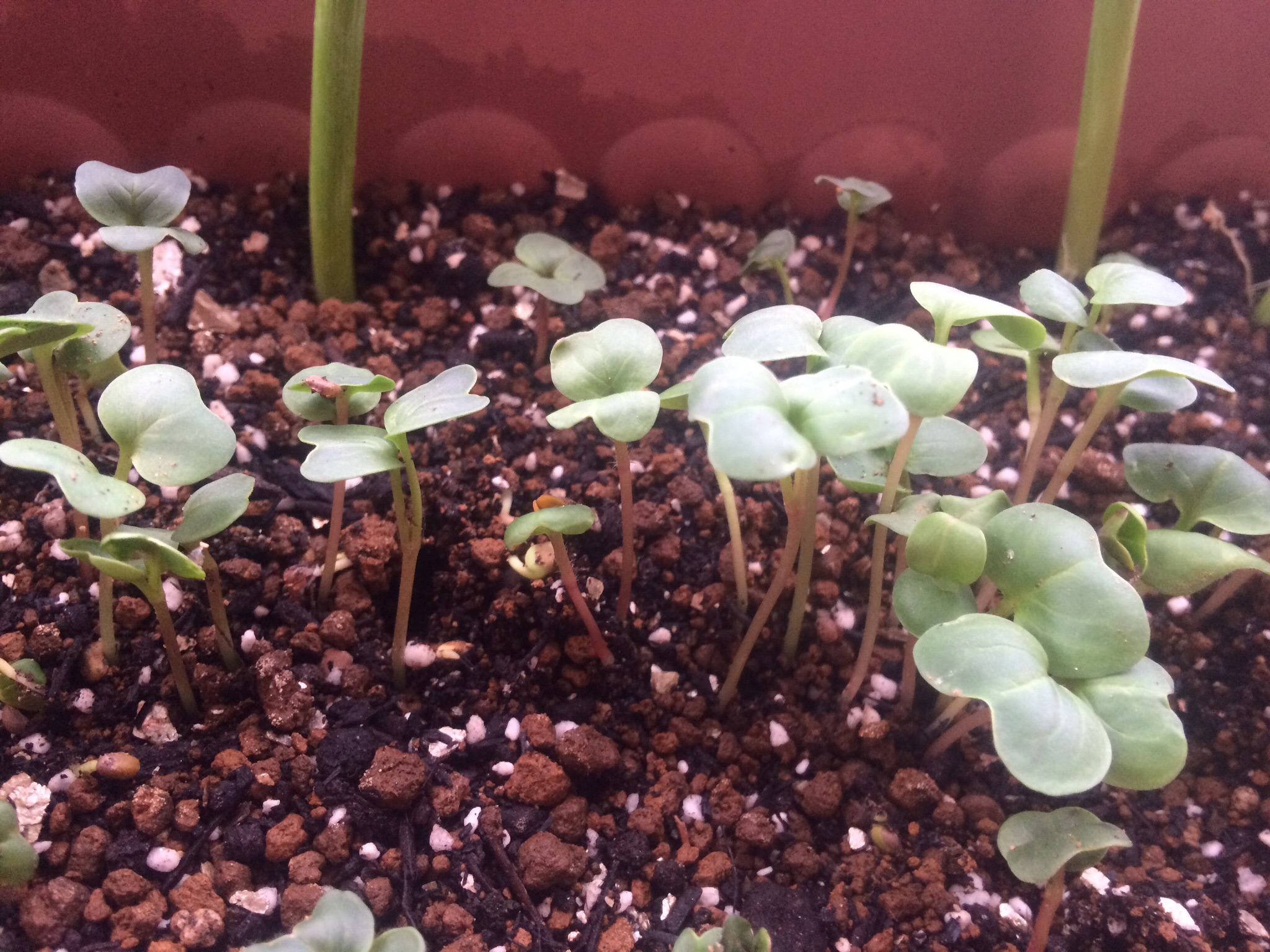 昨日ちょいちょい間引きというか、密集地のやつは抜いて、周りに植え替えたのに