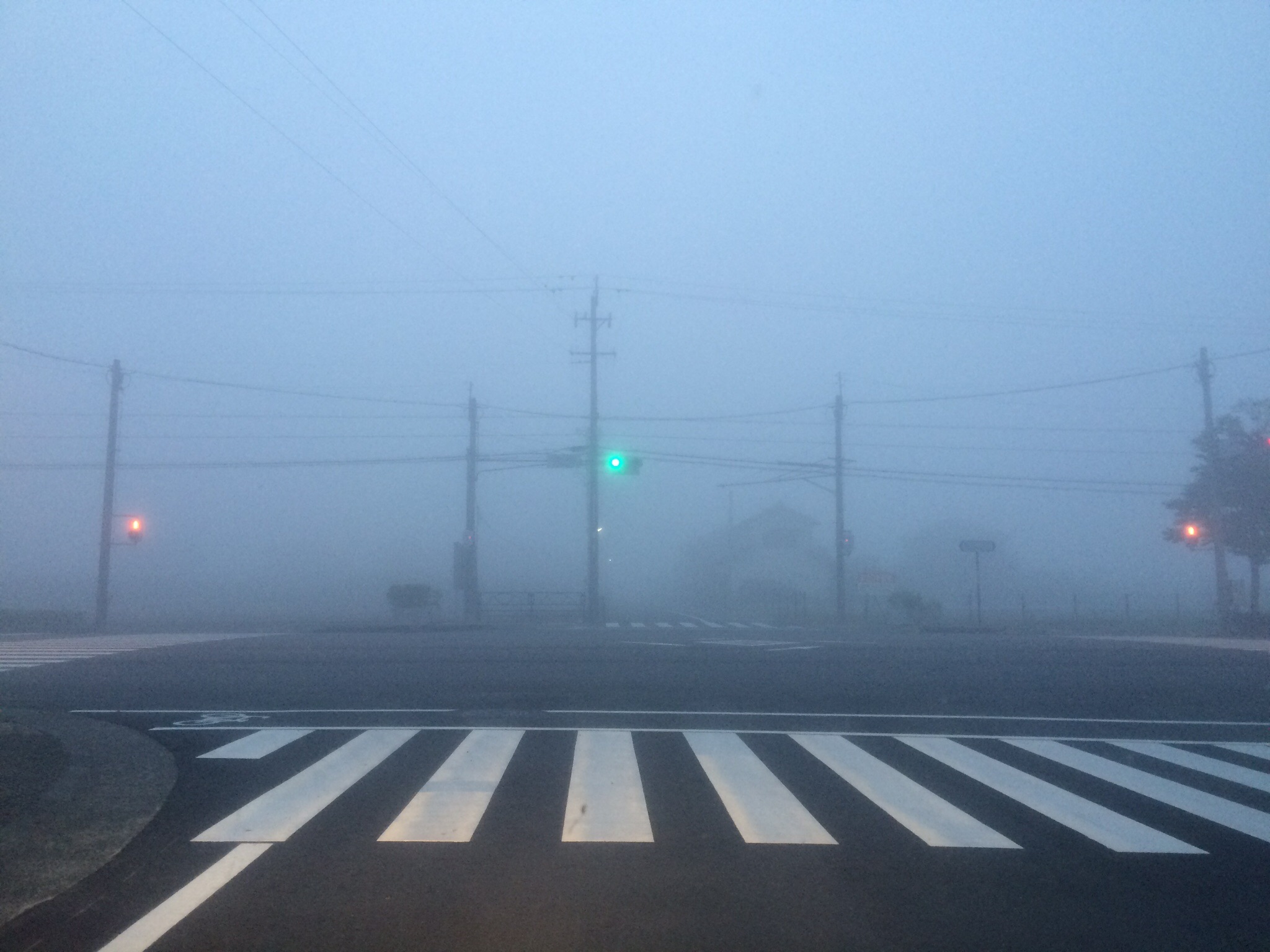 空気がやけにひんやりしてるよね、と思った瞬間の濃霧。